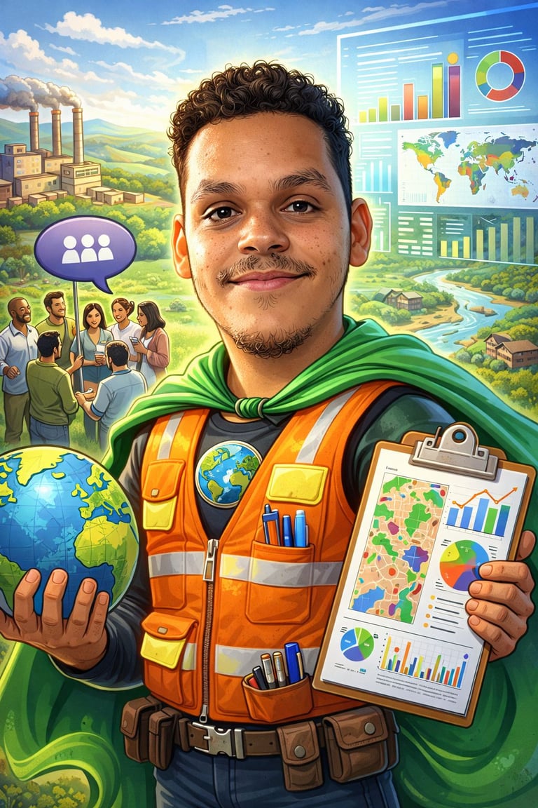 Sua prática profissional combina presença em campo e capacidade analítica. Atua na mobilização comunitária, no diálogo com diferentes atores sociais e na organização de diagnósticos territoriais que apoiam processos de licenciamento e planejamento socioambiental. Mais do que mapear dados, busca compreender relações — entre pessoas, instituições e territórios.
